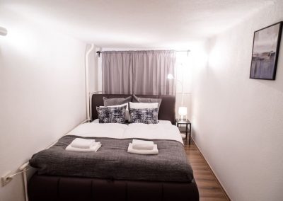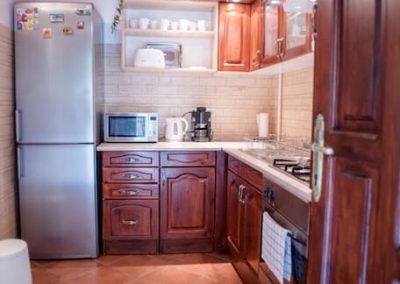 L’immobile, al piano terra con vista sulla corte interna, è composto da cucina attrezzata, soggiorno, bagno, stanza da letto e stanza per gli ospiti e viene venduto completamente arredato.